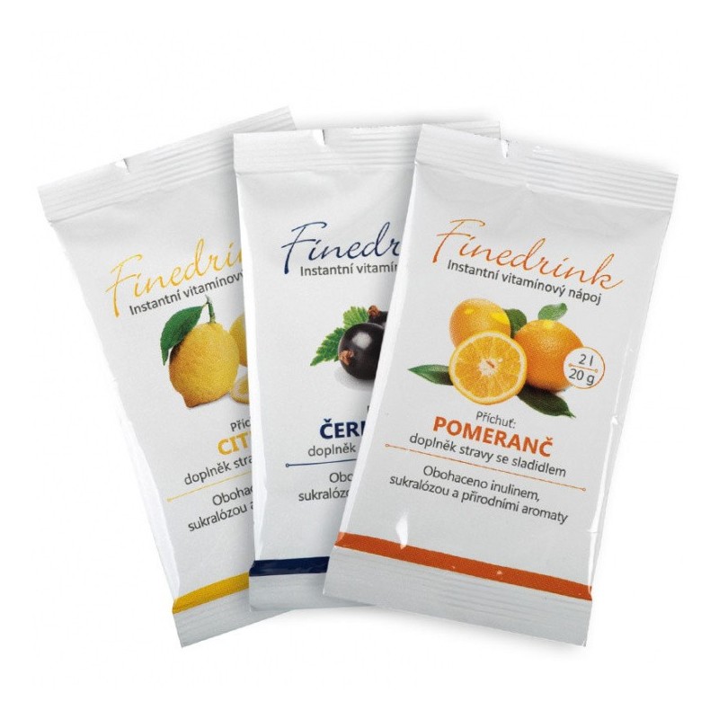 Opis produktu Finedrink to napój hipotoniczny w proszku przeznaczony do rozpuszczenia w wodzie. Hipotoniczny skład preparatu ułatwia transport wody do organizmu. Smaki: cytryna, czarna porzeczka, grapefruit, pomarańcza. Dowolną kombinację trzech smaków prosimy wpisać w uwagach do zamówienia.